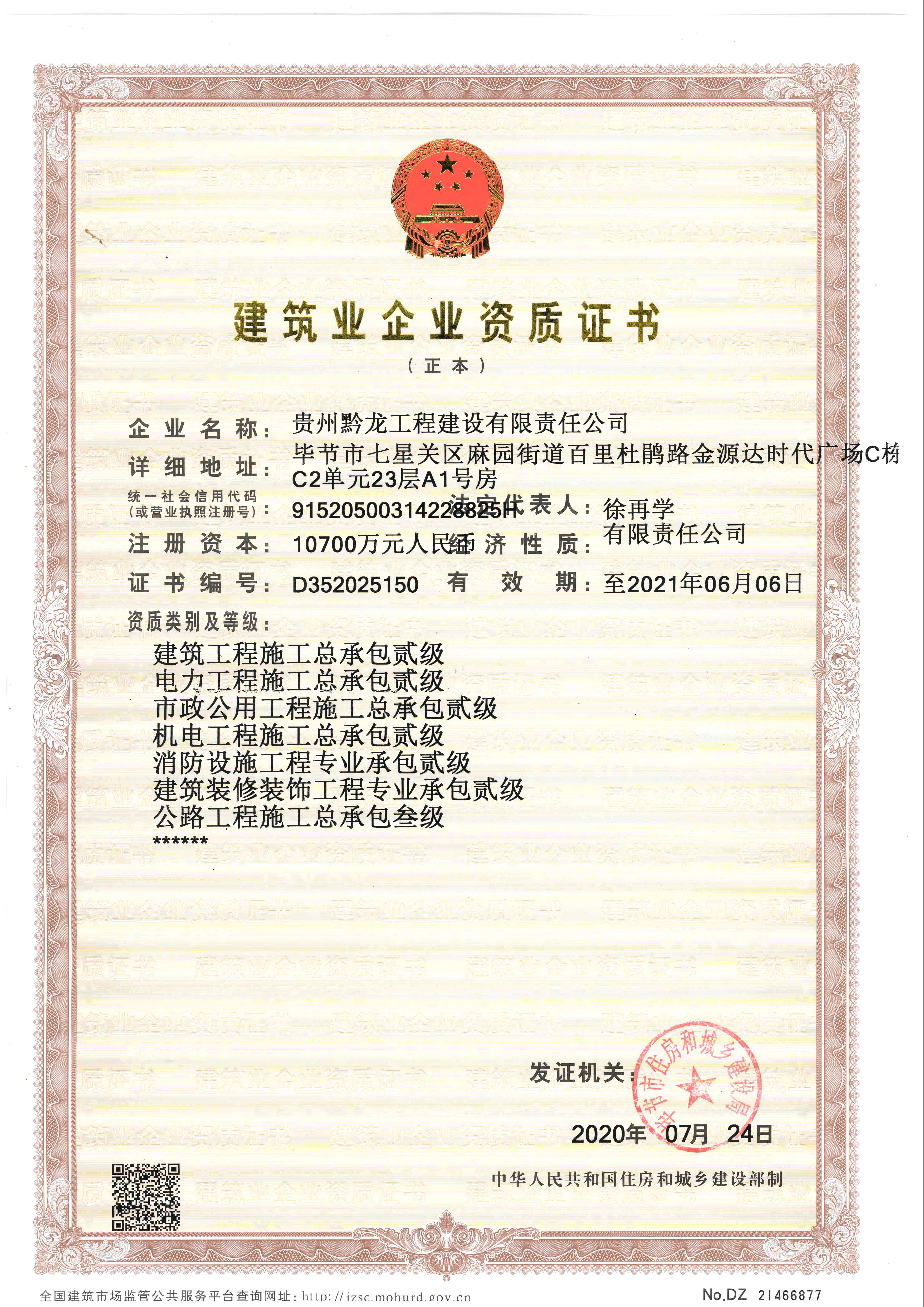 我公司自2014年10月23日公司成立以来,始终秉承着“知行合一,厚德笃行,众志成城,共建共享”的企业使命,对每一个项目进行严格、合法合规的管理,不断加强公司的专业技术能力,认真、严谨地施工,重视工程的安全与品质。通过公司全体员工多年来坚持不懈的努力,我公司终于在2020年7月24日获得“消防设施工程专业承包贰级”“建筑装饰装修工程专业承包贰级”两项资质增项,此次资质增项对我公司来说意义重大,标志着我公司专业技术能力的增强、业务板块的扩大,离我公司“构筑品质工程,缔造世纪黔龙”的企业愿景又近一步!