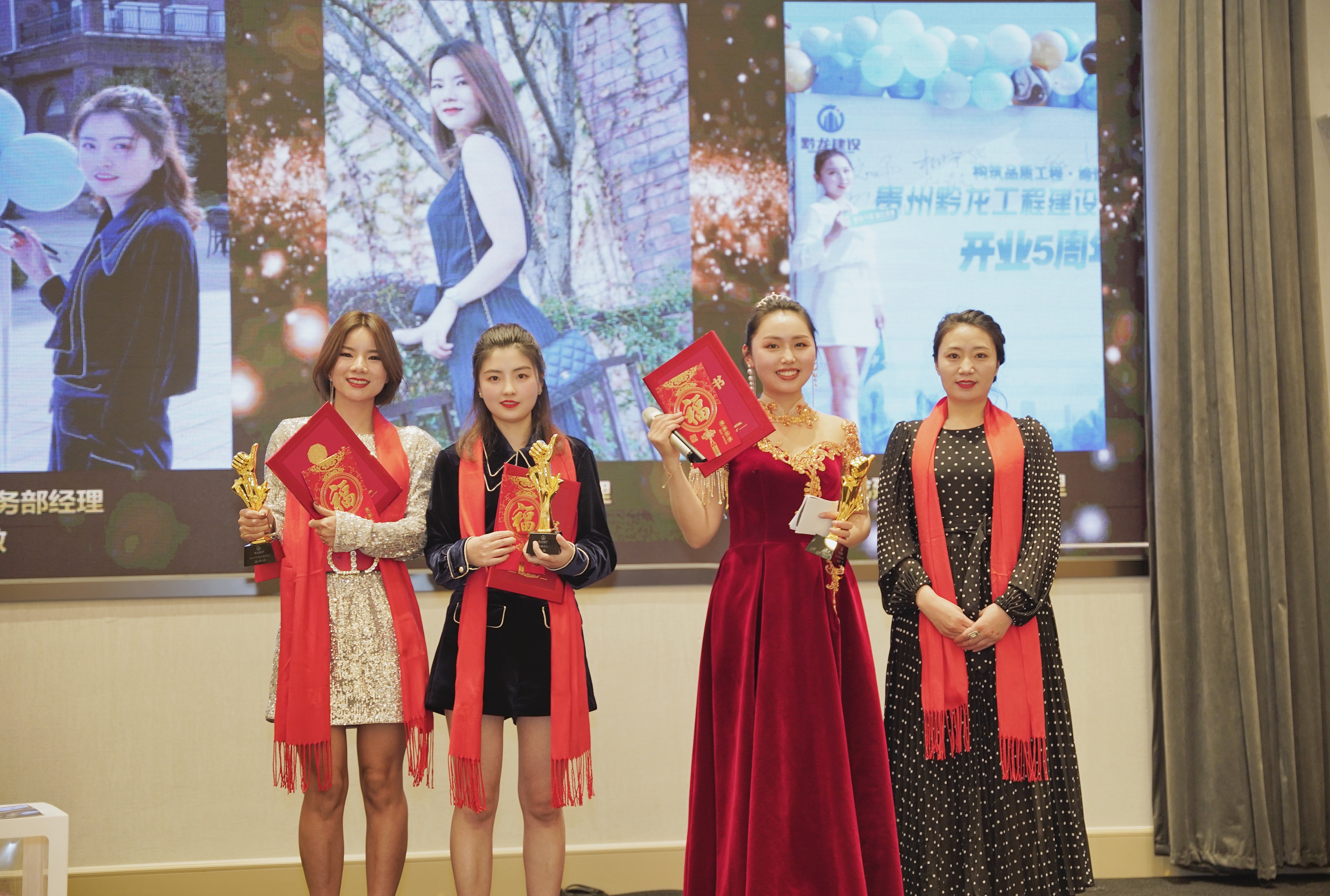 优 秀员工奖获奖者:张婷婷(左一)、王敏(左二)、杨倩(右二)